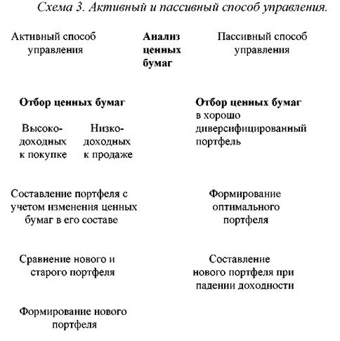 Активное управление характерно для опытных инвесторов, инвестиционных менеджеров высокой квалификации; оно требует хорошего знания рынка ценных бумаг, умения быстро ориентироваться при изменении конъюнктуры рынка.