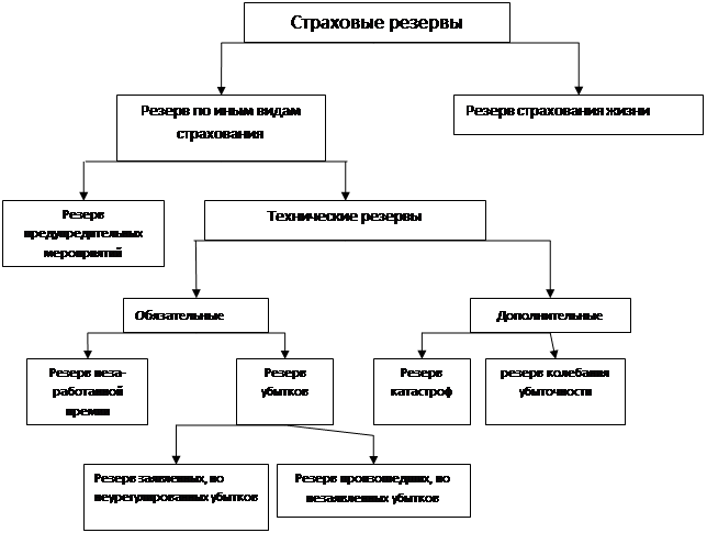 В соответствии с требованиями страхового законодательства РФ, резервы страховых компаний подразделяются на резервы по страхованию жизни, резерв предупредительных мероприятий и технические резервы.