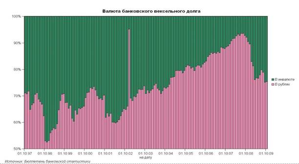 Если говорить в целом о доле векселей в общем объеме вложений банков в ценные бумаги, то она на 1 января 2009 г. составила 8% против 10% на начало и 12% на середину 2008 г.