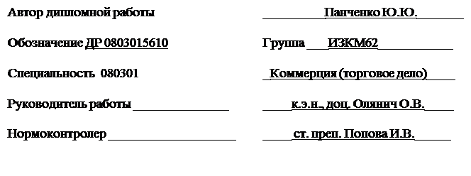 Руководитель работы ______________ __ к.э.н., доц.Олянич О.В. ______