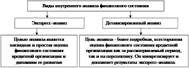 Анализ финансового состояния коммерческого банка можно представить как внешний: со стороны ЦБ РФ, независимых рейтинговых агентств, потенциальных клиентов (вкладчиков, акционеров), и внутренний - внутренними аналитическими службами банка.