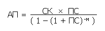 Ск - срок кредита в годах или отношение периода пользования кредитом в днях к 360 или 365 дням;