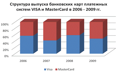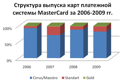 Рис. 5. Структура выпуска карт платежной системы MasterCard за 2006-2009 гг.
