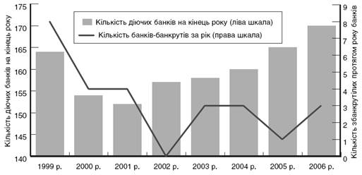 Графік 1.1. Кількість банків, які зазнали банкрутства за 1999 – 2006 рр.
