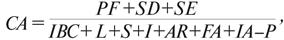 де П12 – прострочена заборгованість банку, П13 – резерви під активні операції, П14 – накопичений прибуток, П15 – субординований борг, П16 – акціонерний капітал, А12 – прострочені та сумнівні кредити, А13 – сумнівна дебіторська заборгованість, А14 – прострочені та сумнівні нараховані доходи, А15 – інвестиції в асоційовані та дочірні компанії, А16 – основні засоби та інші цінності.