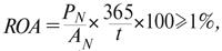 де t – період спостереження (днів) з початку року; PN (net profit) – чистий прибуток наростаючим підсумком за період t; AN (net assets) – середнє значення чистих активів банку у період t (без урахування МФК).