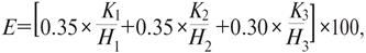 де E – поточна оцінка ефективності банку на конкретну дату; H1 , ... H3 – нормативні значення для коефіцієнтів К1 , … К3 .