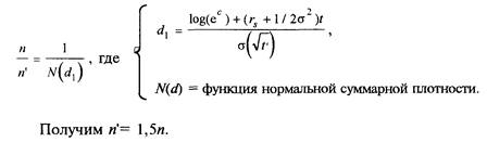 Пропорция опционов относительно акций (отношение п) зависит от нескольких параметров (курс ценной бумаги, оставшийся срок и т.д.), которые постоянно изменяются; следовательно, эту пропорцию надо постоянно приспосабливать, чтобы держать портфель без риска. В нашем случае инвестор не держит портфель без риска, потому что он не воссоздал свой портфель по воле колебаний параметра d 1 .