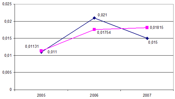 Отже, на доходність ЗАТ КБ «ПриватБанк» значний вплив мають активи, які у 2006-2007 роках значно зростають.