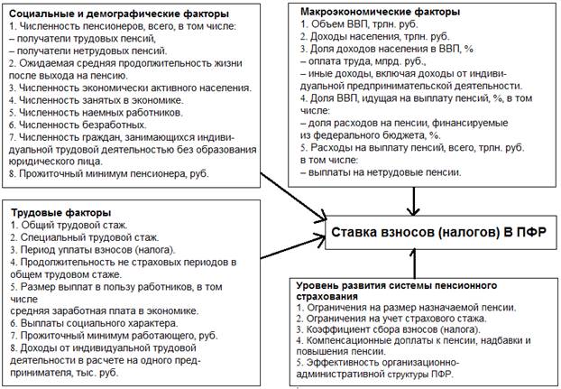 Среди экономических факторов наибольшее воздействие на функционирование пенсионной системы оказывают темпы роста валового внутреннего продукта, фонда оплаты труда работающих по найму, доходов иных категорий населения, средней заработной платы, темпы инфляции, фактическая доходность инвестиций, уровень безработицы и ряд других показателей.