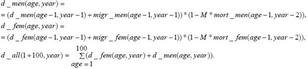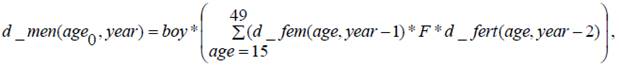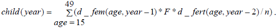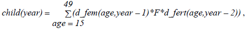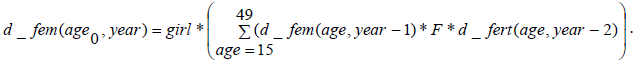 d_fert(age,year-2) – коэффициент рождаемости для женщин определенного возраста в году, предшествующем рождению детей;