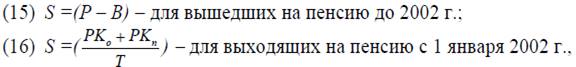 где P –сумма одной установленной пенсии с учетом повышений и компенсационной выплаты в связи с ростом стоимости жизни в Российской Федерации с применением соответствующего районного коэффициента, за исключением надбавок на уход и на нетрудоспособных иждивенцев; PK –расчетный пенсионный капитал по правам за работу в старой системе; PKn –пенсионный капитал застрахованного лица, заработанный после 01 января 2002 г.; T –количество месяцев ожидаемого периода выплаты трудовой пенсии.