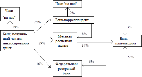 Примерно четвертая часть всех чеков направляется для зачета в банки–корреспонденты. У этих банков при получении чеков на инкассо тоже имеются несколько вариантов: