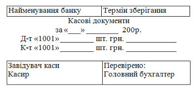 Готівка приймається за такими документами: об'ява про внесення готівки, повідомлення, прибуткові касові ордери.