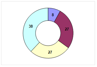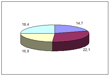 Рис.3.2. Зміст учасників ICCOS-2004 по категоріях: 18,4 – ЦБ НБ, 14,7 – обробники, 22,1 – постачальники, 16,9 - КБ