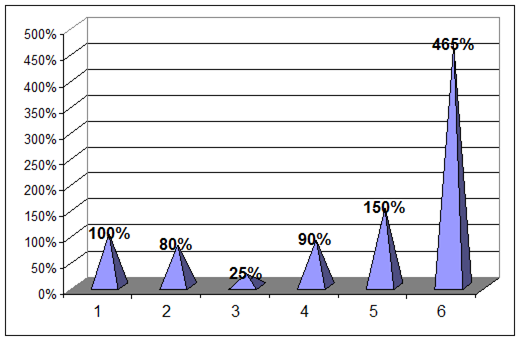 Цікаві дані були приведені у виступі директора Бюро гравірування і друку США Томаса Фергюсона (Thomas Ferguson). Він відзначив, що за останні 20 років (з 1985 по 2005 р.) зростання кількості доларів США в обігу по номіналах склало від 25 до 465% (рис. 3.4).