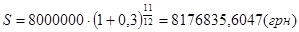 Визначити брутто-премію, що зобов'язаний сплатити страхувальник при таких умовах: розмір позички - 8 млн. грн. ., плата за кредит - 30% у рік, термін кредитного договору - 11 місяців, тарифна ставка - 17%