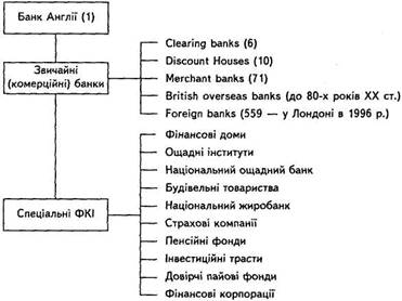 Основні ФКІ Великобританії станом на середину 90-х років наведено на рис.1.