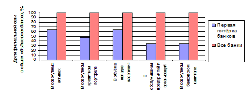 Рис. 1.1. Доля первой пятёрки российских банков в общей банковской сети