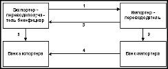После заключения контракта (1) между импортером и экспортером импортер направляет в банк заявление на перевод (2). Поставка товара (3) может предшествовать платежу или последовать за ним, что определяется условиями контракта и валютным законодательством стран.