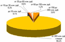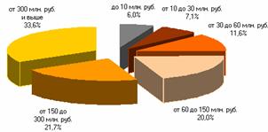 Рис 2.5: Группировка кредитных организация, использующих право на усреднение обязательных резервов в октябре 2009 года, по величине зарегистрированного уставного капитала.