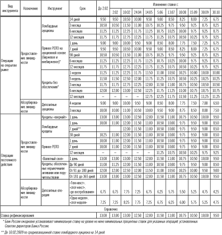 Процентные ставки по операциям Банка России в 2009 году (% годовых)