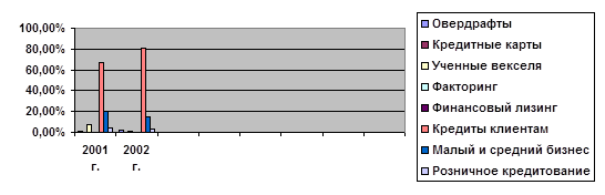 В целом акцент по размещению активов продолжат смещаться в сторону увеличения доли активных операций с клиентами и, в первую очередь. кредитования, поскольку именно этот вид активных операций дает наиболее высокий стабильный доход. Кредитные вложения на конец 2003 года возросли и составили 113,610 млн. тенге.