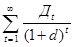 d - ставка доходности по альтернативному вложению с таким же уровнем риска, как и риск вложения в данные акции; t - число периодов, включенных в расчет.