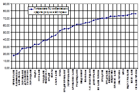 Рис.Г.8. – Конкурентне позиціонування пропозицій АКБ “Приватбанк” в сегменті доходних строкових депозитів фізичних осіб в гривнях (обмеження мінімальної суми депозиту в залежності від % ставка депозиту)