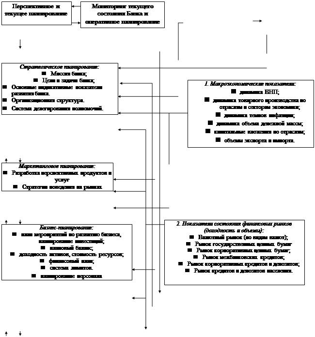 Предложенная выше схема взаимодействия информационных потоков при получении плановых показателей различного уровня обеспечивает интегрированный, системный и ситуационный подходы к планированию деятельности банка.