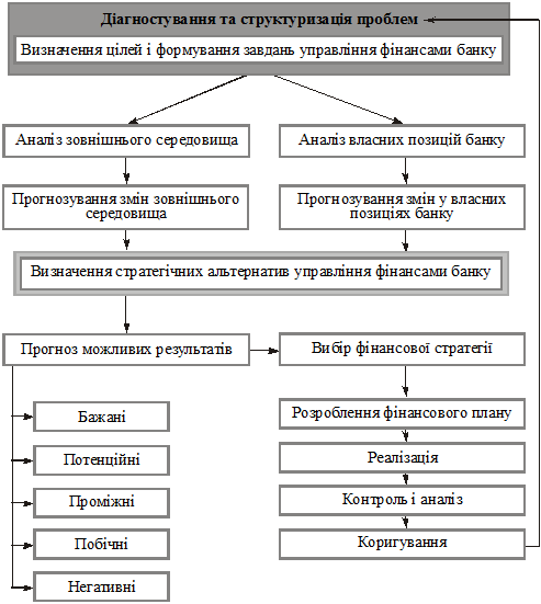 Розробка обґрунтованого плану діяльності банку базується на результатах докладного аналізу фактичного становища банку та прогнозування майбутніх форм діяльності. Аналіз з позицій сьогодення та майбутнього стосується таких основних сфер управління банківською діяльністю: