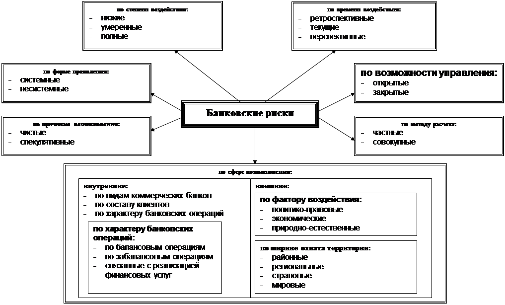 Построение обоснованной классификации банковских рисков особенно затруднено из-за разного понимания сущности управления отдельными банковскими рисками.