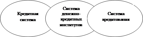 Рис. 1. Взаимодействие кредитной системы, системы денежно-кредитных институтов в системе кредитования [2, стр. 10]