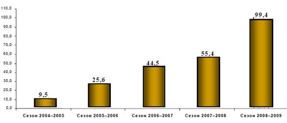 Было выдано кредитов на сумму 335 млрд. руб. Вложения банка в агропромышленный комплекс России увеличились за год на 127 млрд. руб. – до 373 млрд. руб. Доля кредитных вложений непосредственно в агропромышленный комплекс составила 80%. При этом объемы кредитной поддержки динамично нарастали в течение года, вне зависимости от развития кризисных явлений на рынке.
