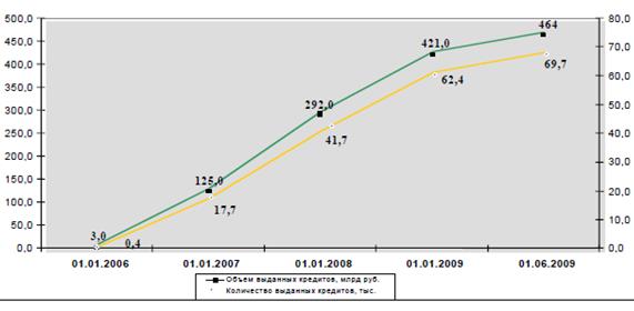 В 2008 г. «Россельхозбанк» сохранил ранее набранные темпы кредитования агропромышленного комплекса и обеспечил, несмотря на финансовый кризис, устойчивую и стабильную работу. Все основные показатели имеют достаточно хорошую динамику. На начало 2009 г. величина кредитного портфеля банка достигла 466 млрд. руб., при первоначальном плане – 380 млрд. руб. За год кредитный портфель вырос на 173 млрд. руб., или почти на 60% (прил.Г).
