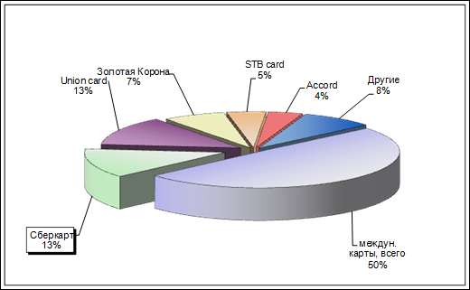 Многие банки предпочитают диверсифицировать свою деятельность и сочетают выпуск международных карточек с членством в российских платежных системах. Карточки международных платежных систем имеют пока неоспоримое преимущество перед российскими, так как их принимают по всему миру. Несомненно, что в России такие карточки имеют устойчивых потребителей среди организаций и граждан, часто выезжающих за границу.