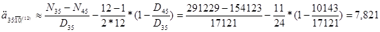 | В виде пожизненной ренты, отсроченной на n лет, выплачиваемой m раз в году | 1/m, m раз в год, в начале каждого 1/m интервала времени |