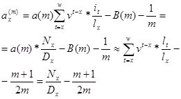 - стоимость на начальный момент времени t серии из nm выплат в сумме 1/m каждая, производимых через интервалы времени 1/m, начиная с момента t.