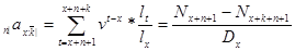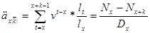 | Ежегодная уплата взносов в течение k лет в начале страхового года, если застрахованный жив | |||