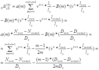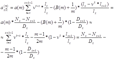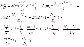 | Пожизненная уплата страховых взносов m раз в течение страхового года, в начале каждого m-го периода года | – | – | |