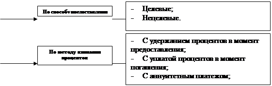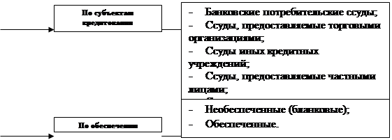 Кредит может быть использован на производственные нужды или на цели потребления. Следовательно, в зависимости от цели получения кредита заёмщиком, различают производительную и потребительскую формы кредита. При производительной форме кредита полученные деньги используются на цели производства и обращения. Потребительская форма кредита, в отличие от его производительной формы, используется населением на цели потребления, она не направлена на создание новой стоимости, преследует цель удовлетворить потребительские нужды заемщика.