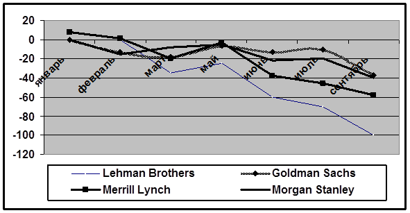 Динамика акций «Большой пятерки» в 2008г., за исключением Bear Stearns