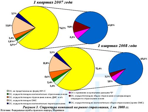 В первом квартале 2008 года на структуре распределения страховых компаний можно наблюдать «эффект специализации».