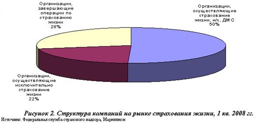 Формально на первые 7 крупнейших компаний в 1 квартале 2008 года приходится 60%. Реально, на десятку кэптивных компаний и компаний, занимающихся классическим страхованием жизни, приходится 71% премий российского рынка страхования жизни.