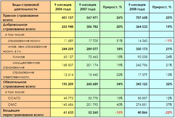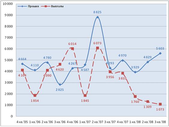 Объем рынка реального страхования жизни в России за последние три года значительно увеличился. В 2006 году он составлял 3,0 млрд.руб, в 2007 году -4,3 млрд.руб, а в IIIквартале 2008 года – 5,6 млрд.руб. Подобный показатель был достигнут вследствие устойчивого роста в последние несколько лет – как показывает статистика, реальный рынок рос в 1,3 раза ежегодно.
