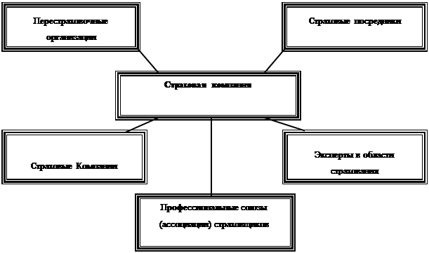 Партнерами в области страхования для каждой конкретной страховой организации выступают другие участники страхования, а также другие страховые организации (рис. 1).