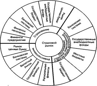 Страховой рынок действует неразрывно в связях с другими составляющими финансового и денежно-кредитного рынка. Он непосредственно связан с кредитным рынком, рынком банковских услуг и др., что обеспечивает его стабильность и нормальное функционирование в соответствии с его целями и задачами. Основной целью функционирования финансового рынка является аккумуляции и перераспределение средств страхователей для снижения и уменьшения последствий рисков с целью получения прибыли.