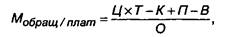 Мобращ/плат = (Ц*Т-К+П-В) /О