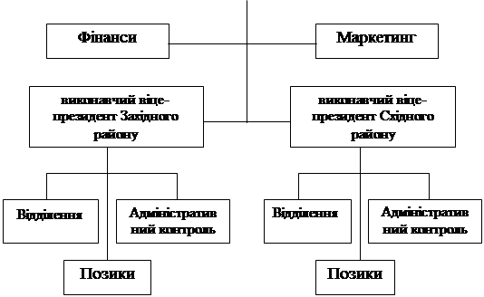 Одна з альтернативних схем, яка забезпечує розподіл функцій та посилення ролі відділень банку, має назву географічної структури.