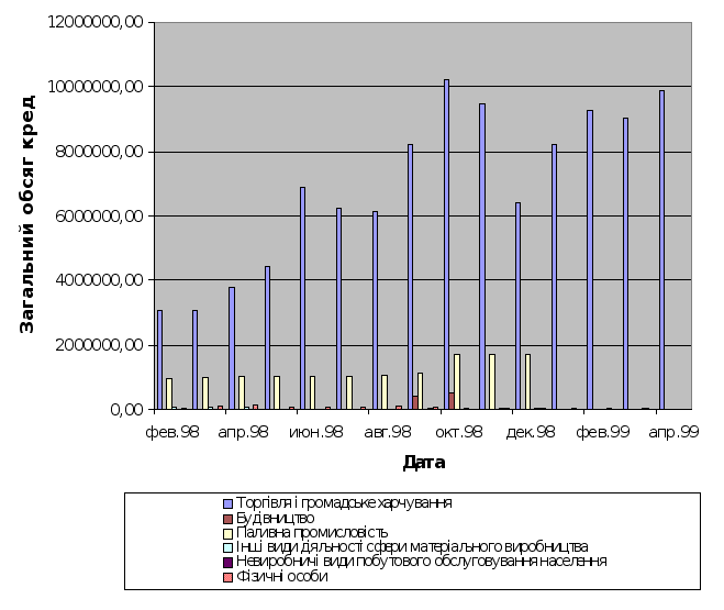 Хоча аналіз кредитної діяльності комерційних банків свідчить про поліпшення якості їхнього кредитного портфеля у 1997 році – незважаючи на зростання абсолютних показників, питома вага прострочених кредитів у загальній сумі наданих зменшилася до 8.7% (на 01.01 1997 р була 10.4%). (15, с.5). Але така тенденція швидко змінилася на протилежну.
